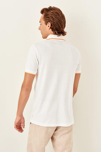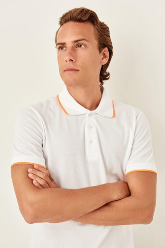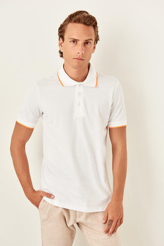 White Male Short-Sleeve Polo Collar Neon Stripe T Shirt