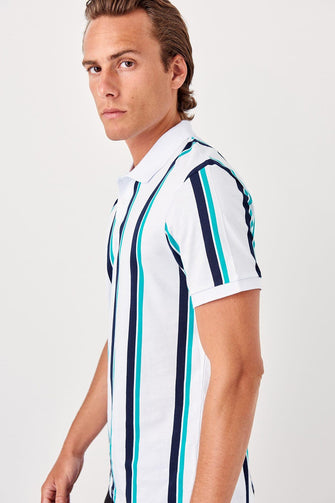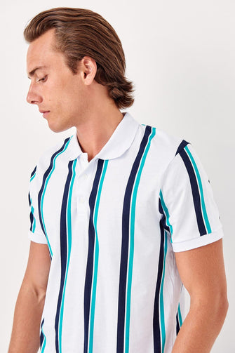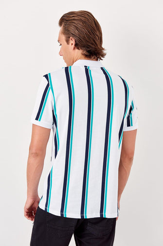 White Male Striped New Polo Collar T-