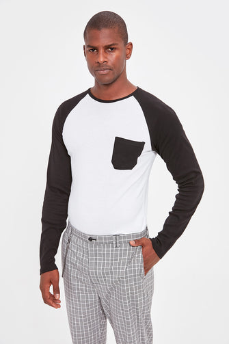 White Men Cycling Collar Long Sleeve New T-Shirt
