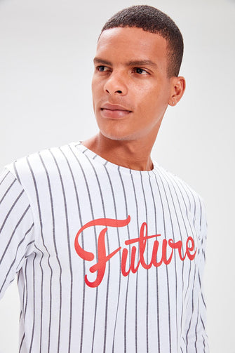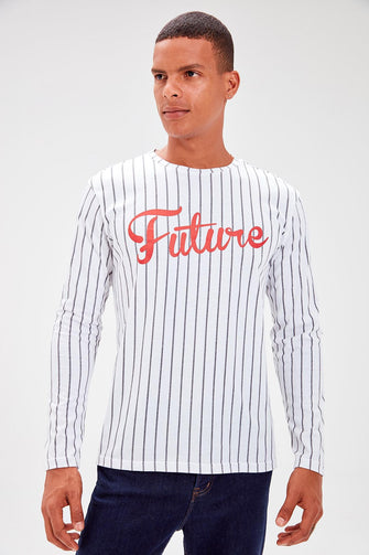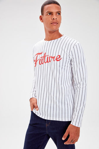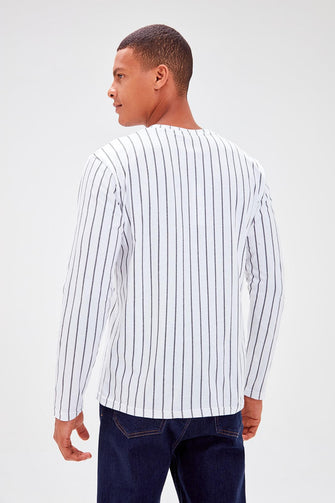 White Men Cycling Collar Long Sleeve Stripe T-Shirt New