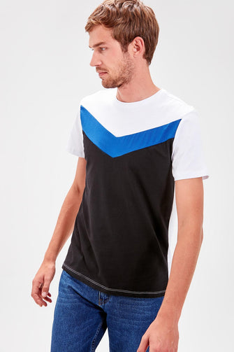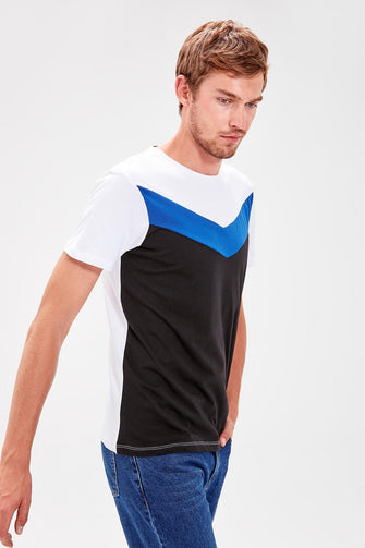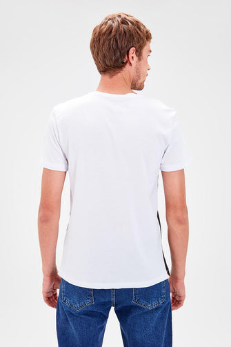 White Men Cycling Neck Short Sleeve Paneled T-Shirt