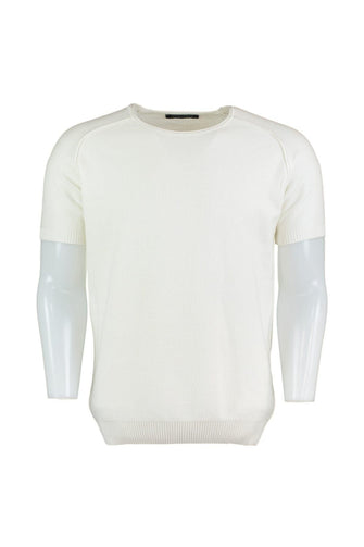 White Men Cycling Neck Textured Short Sleeve Sweater T Shirt