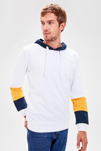White Men Long Sleeve Cycling Collar Hooded New Sweatshirts