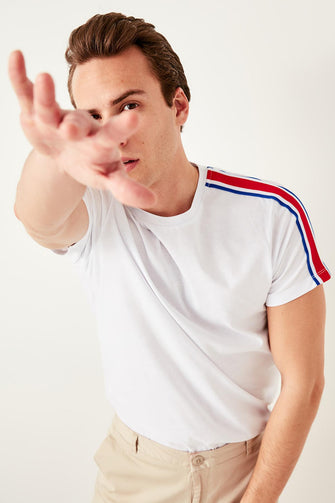 White Men one pieces Of Lane Bicycle Neck T Shirt