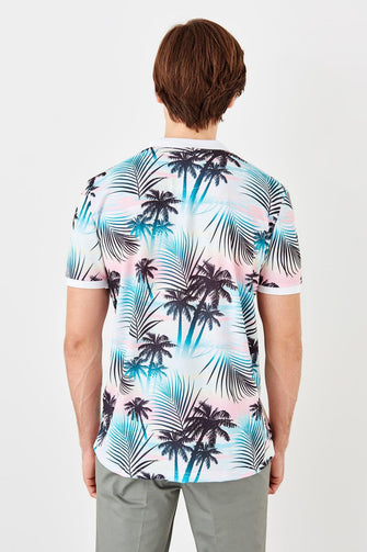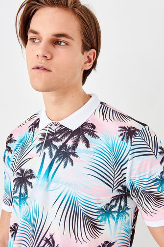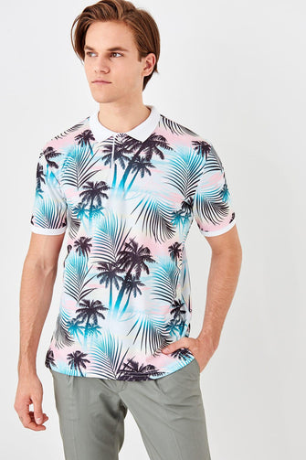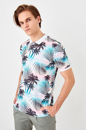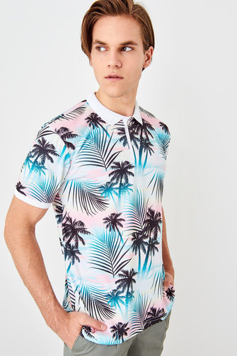White Men Printed New Polo Collar T-Shirt
