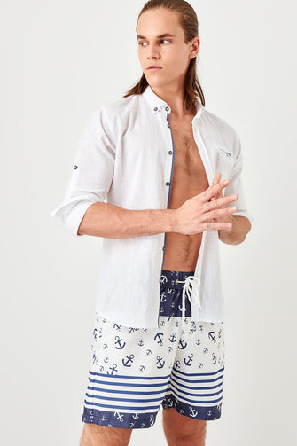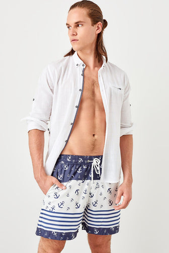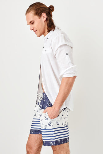 Trendyol White Men 'S Anchor Print Sea Shorts TMNSS19FO0063