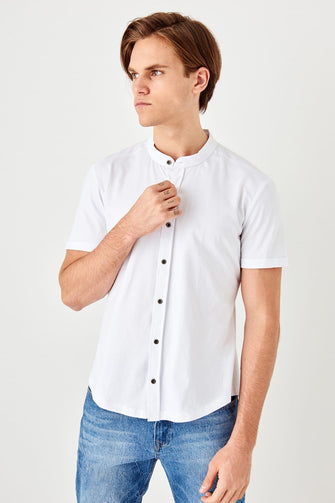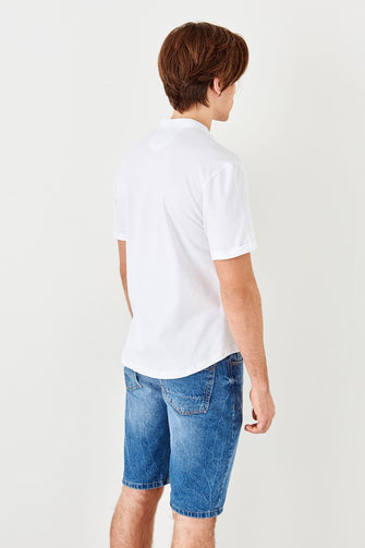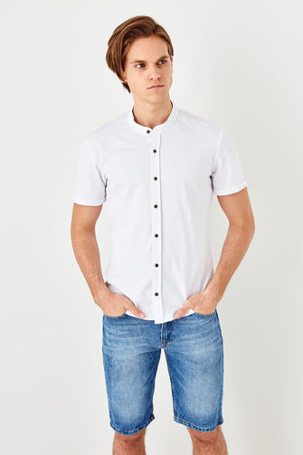 White Men 'S Crew Neck Sweater Straped Short Sleeve Knitted New Shirt