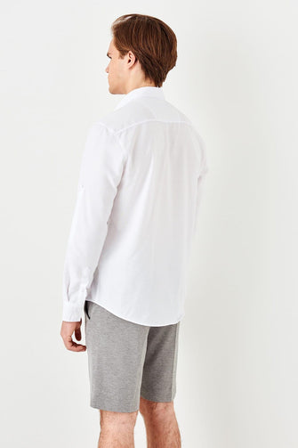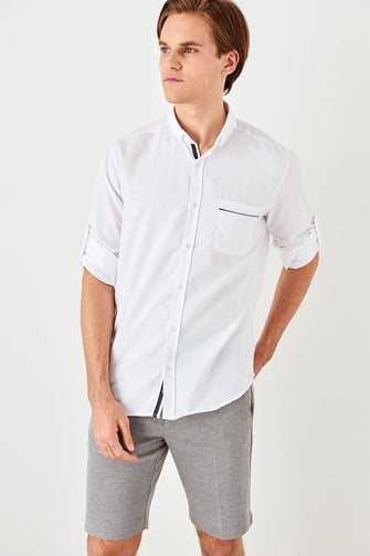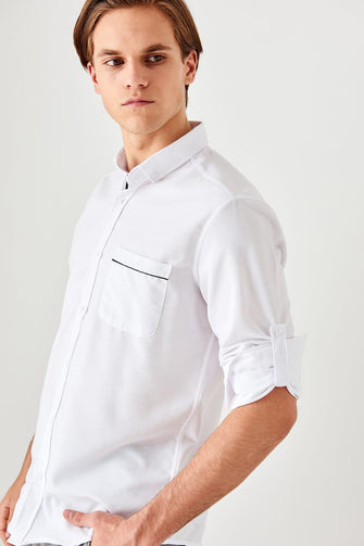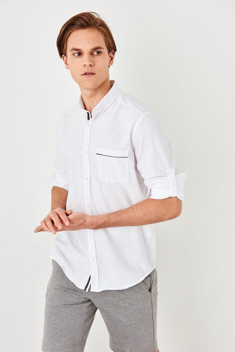 White Men 'S Slim Fit Long Sleeve Single Pocket Top New Shirt