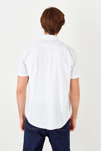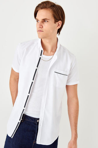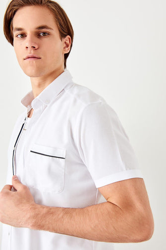 White Men 'S Slim Fit Short Sleeve Single Pocket Top New Shirt