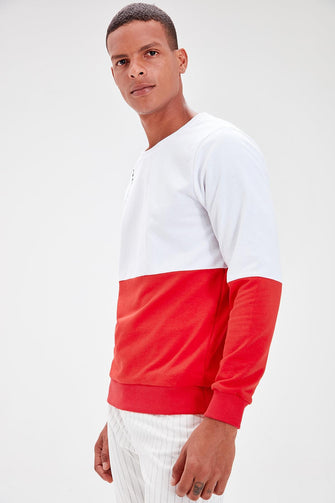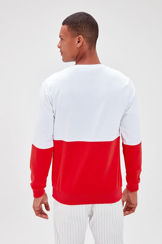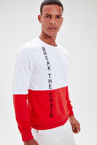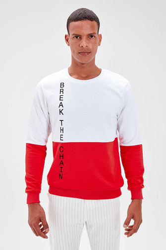 White New Men 'S Printed Paneled Bike Collar Sweatshirt