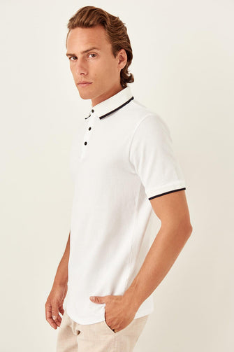 White New Men 'S Short Sleeve New Polo Collar T-Shirt
