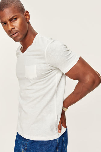 White Presser T-Shirt - Slim Fit Short Sleeve V Neck Pocket Detail