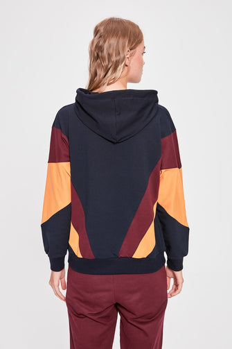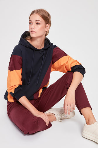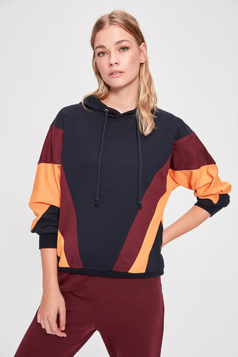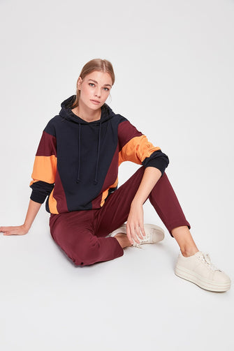 Color Block Hooded Knitted Sweatshirt
