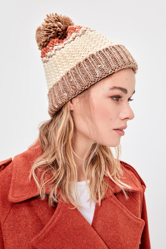 Color Block Pompom Beanie