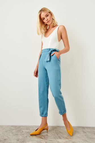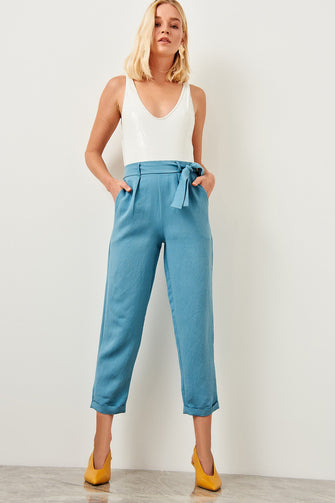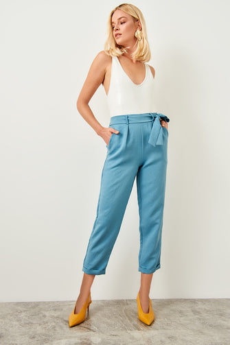Trendyol Women Blue Belt Detailed Casul Pants TWOSS19ST0069