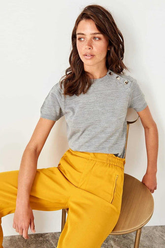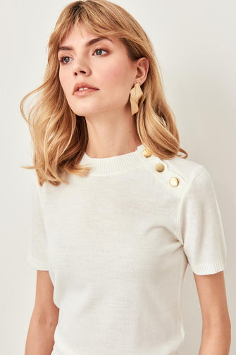 Women Button Turtleneck Ecru Gray Powder Women Knitwear Sweater