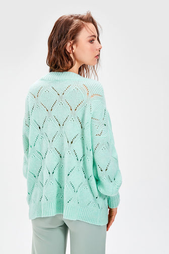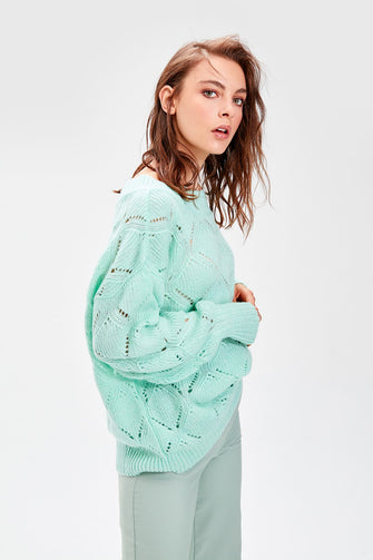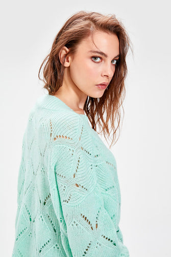 WOMEN-Mint Boat Neckline Cellular Knitwear Sweater
