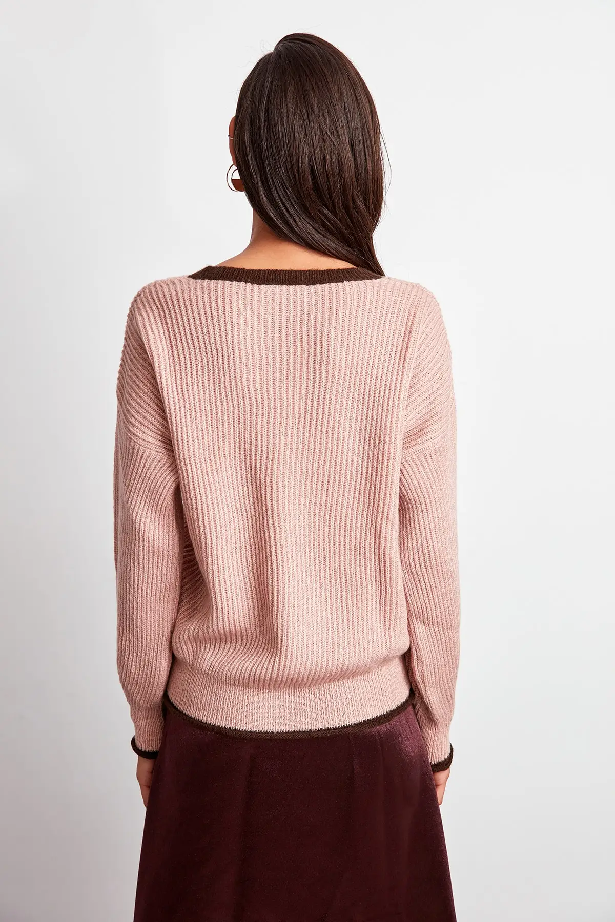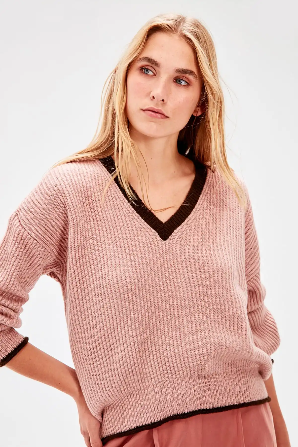 WOMEN-Powder Bias Tape Detailed Knitwear Sweater
