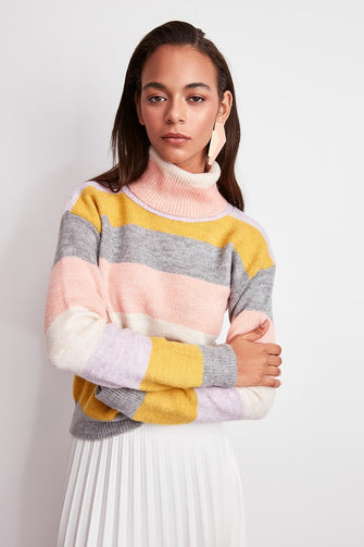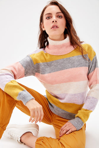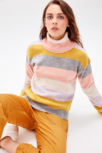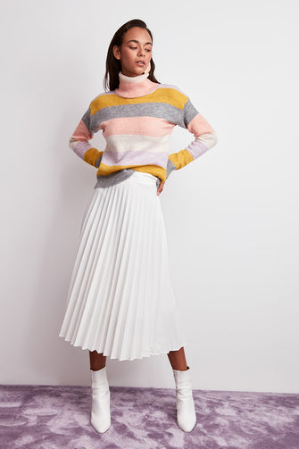 WOMEN-Raw White Striped Sweater