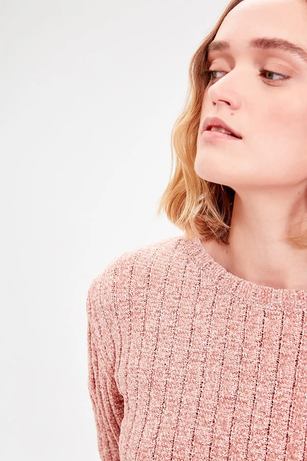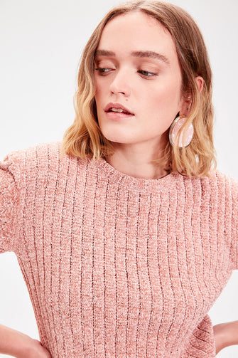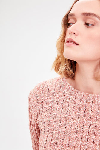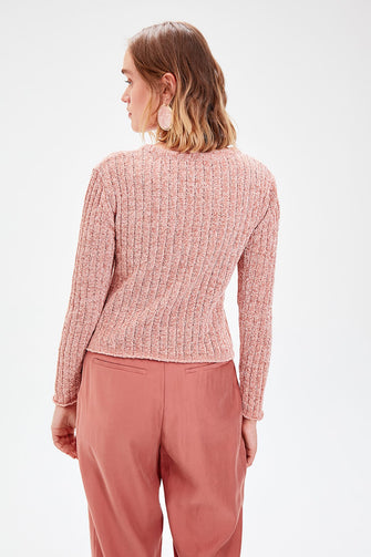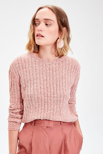 WOMEN-Salmon Bike Collar Chenille Knitwear Sweater