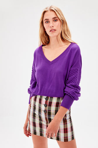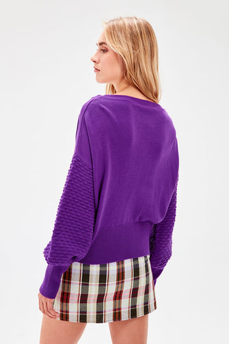 Trendyol Women Sweater With Balloon Sleeve Purple Chain Saw Knitwear TWOAW20YP0001