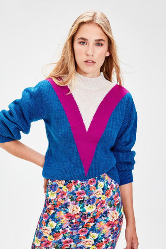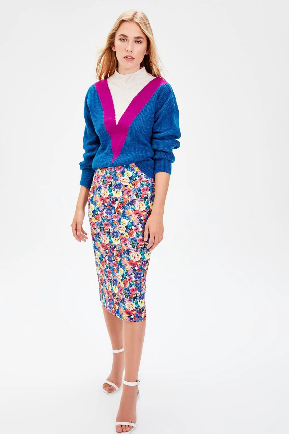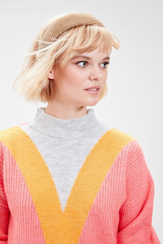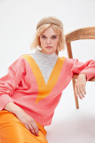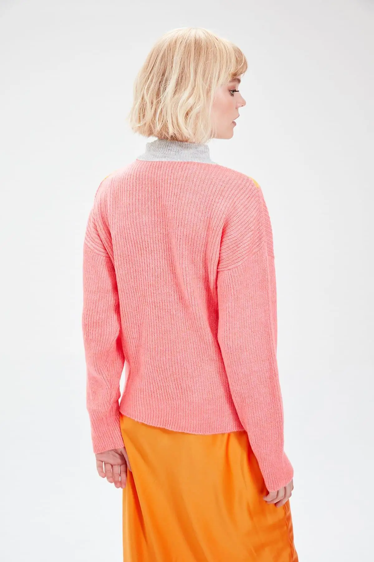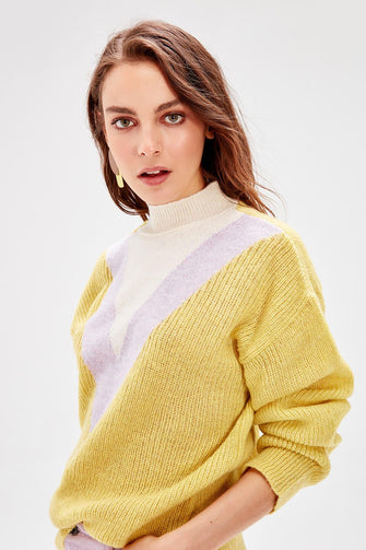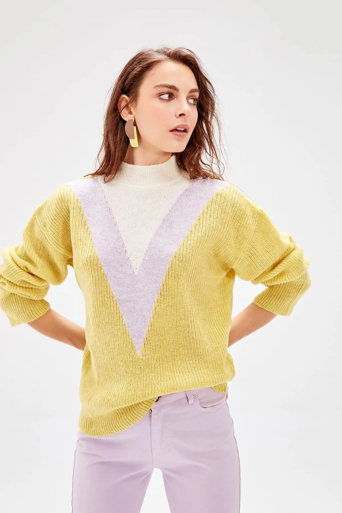 Women Sweater Yellow Pattern Mock Turtleneck Pullovers