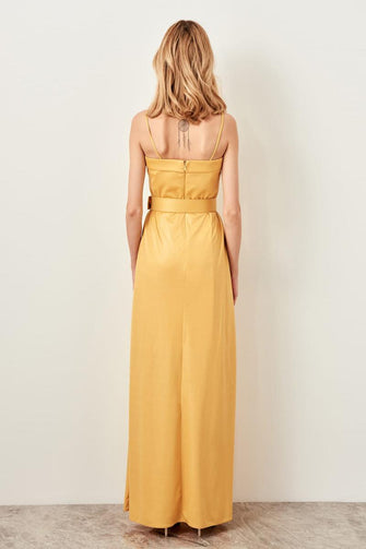 Yellow Arches Collar Detail Evening Dress Dress