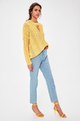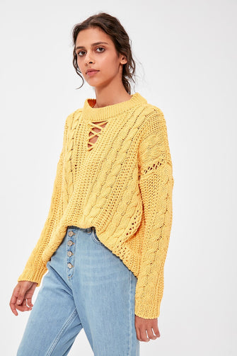 Yellow Collar Detailed Knitwear Sweater
