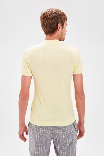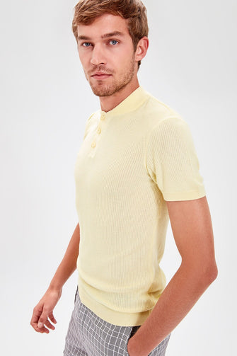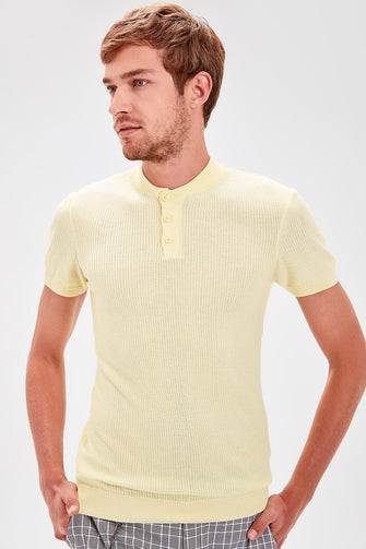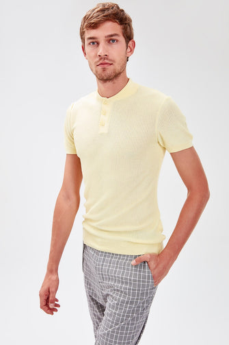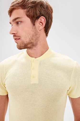Yellow Male Button Textured Bomber Neck Sweater T Shirt