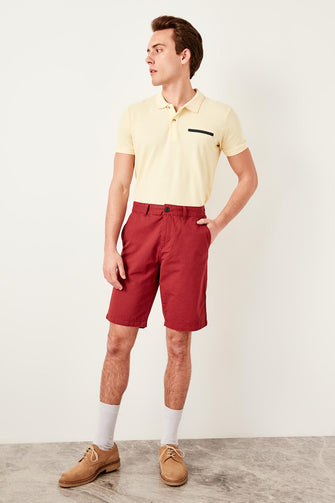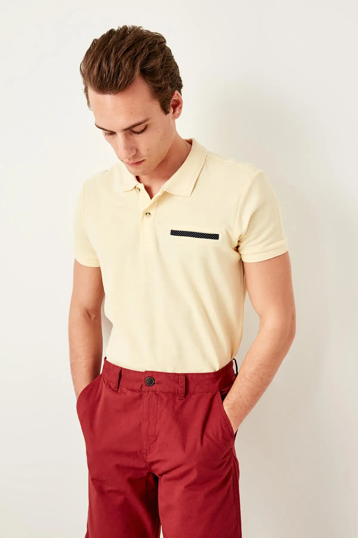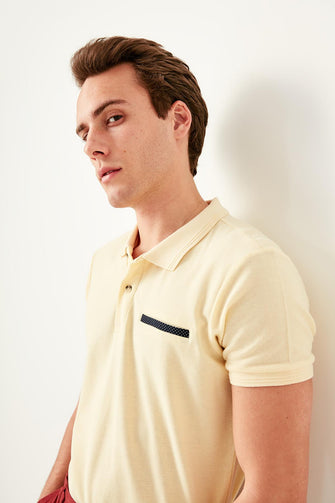 Yellow Men 'S Cotton T-Shirt-Polo Collar Pocket Polo Collar T-Shirt