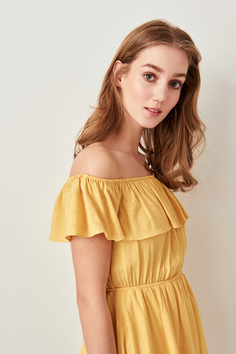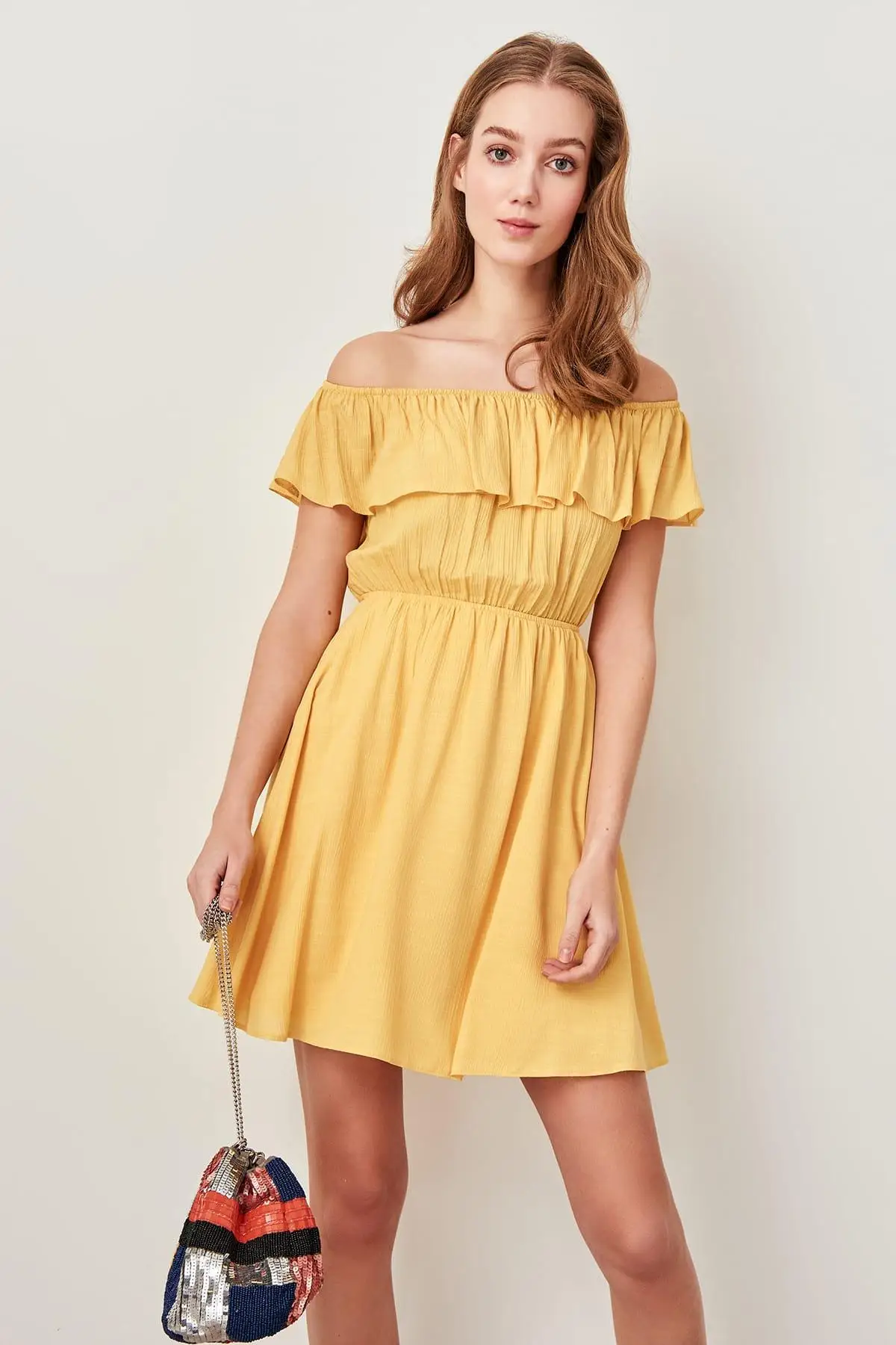 Model Measurements: Height: 1.76, chest 83, waist 63, hips: 91; product on the Model S / are 36 bodies.; 71% Viscose 29% Polyester, Woven Fabric, Belt item is not included.; Our products will be sent by Trendyol tag.