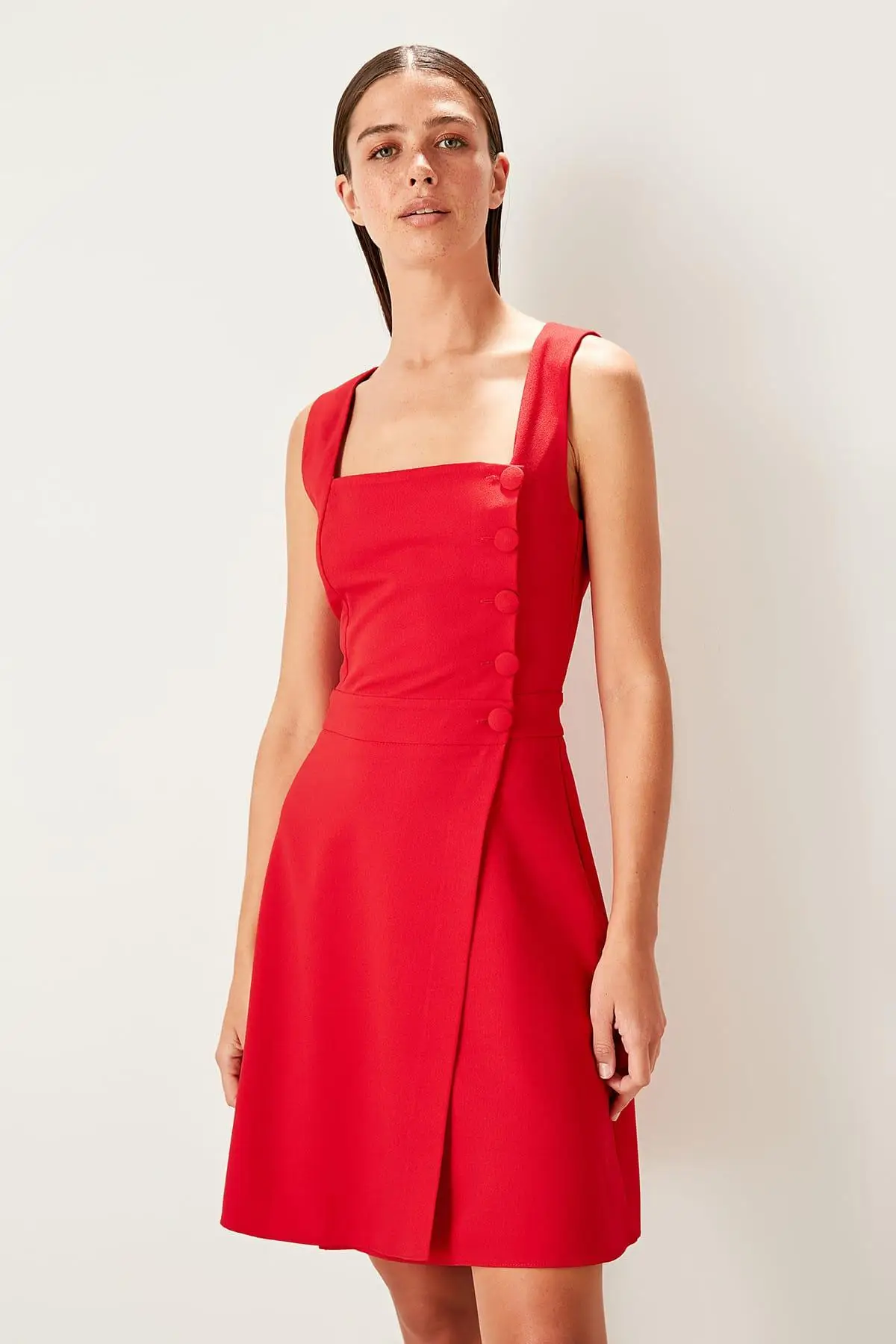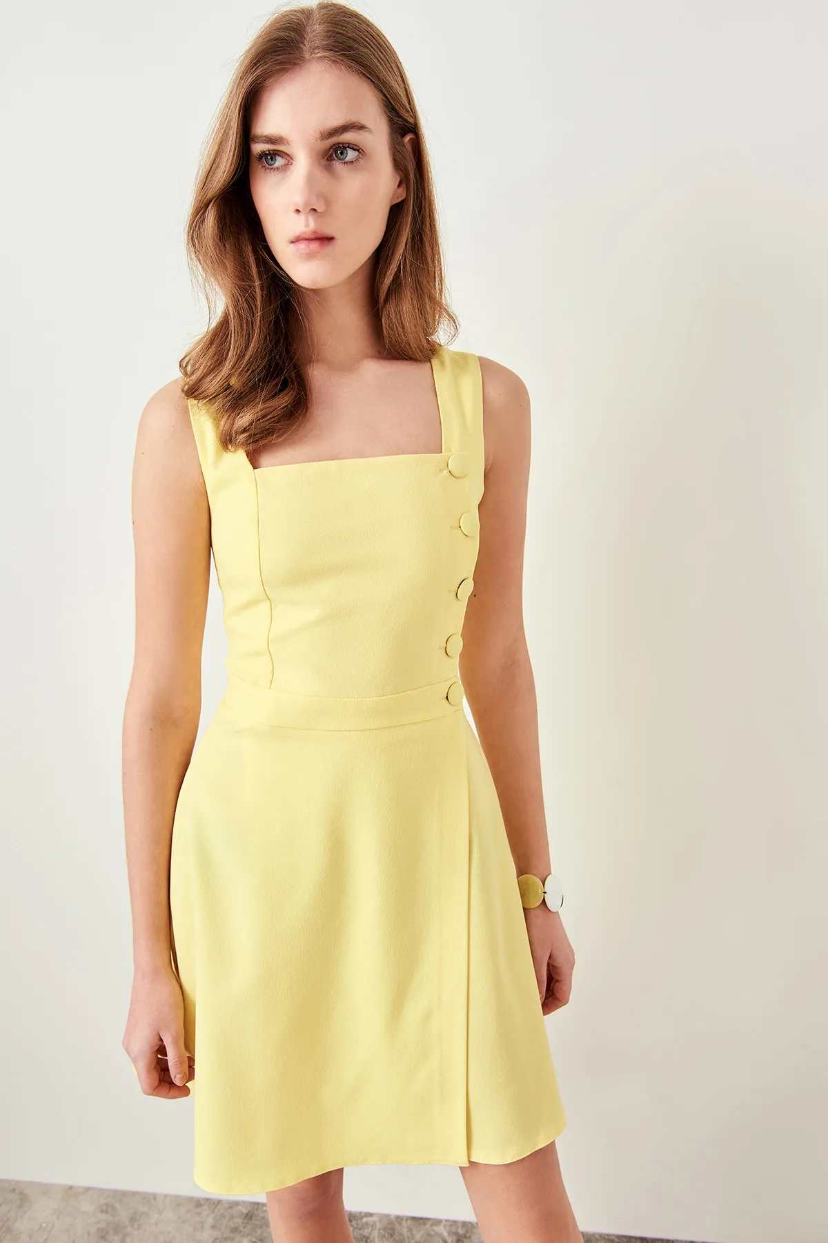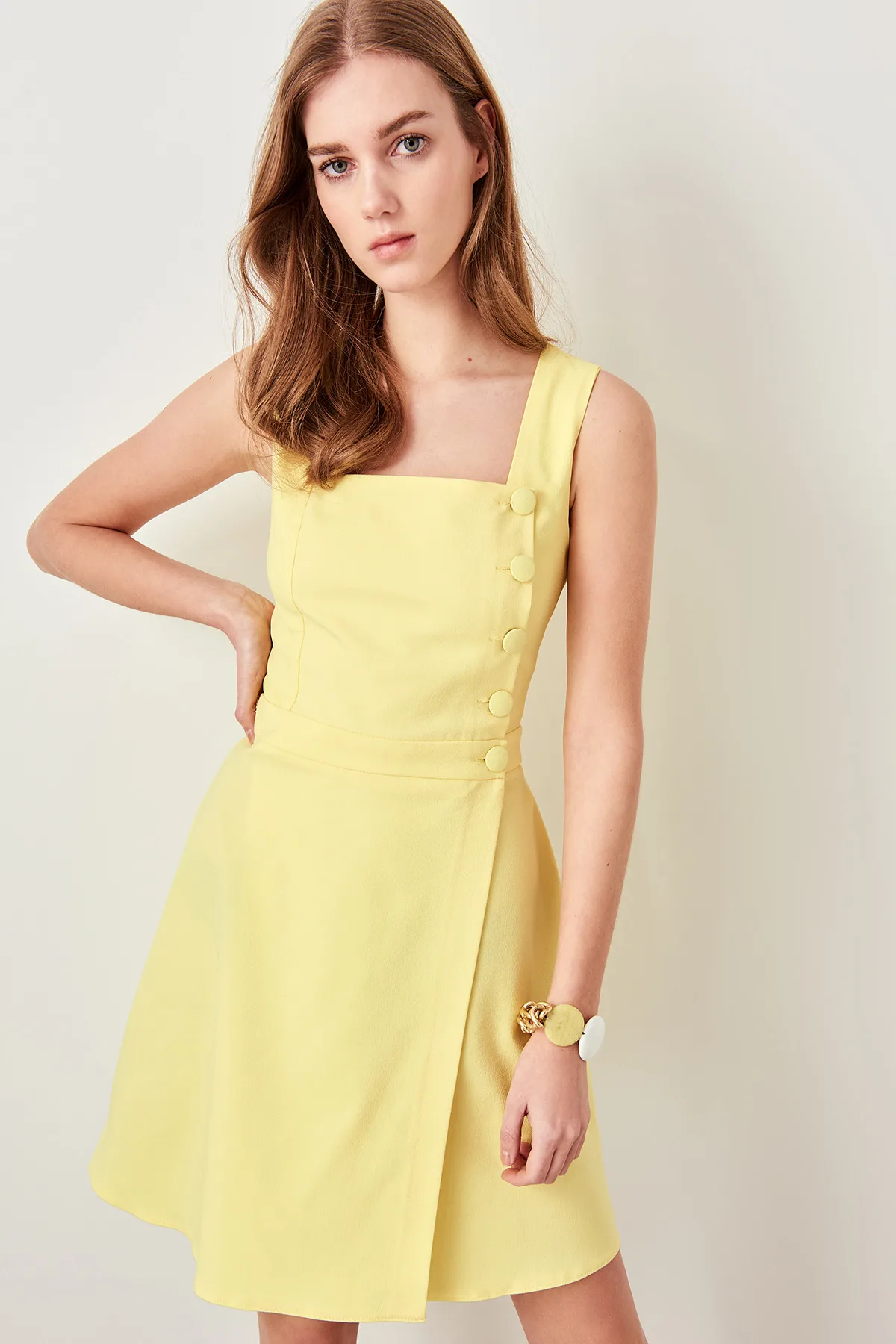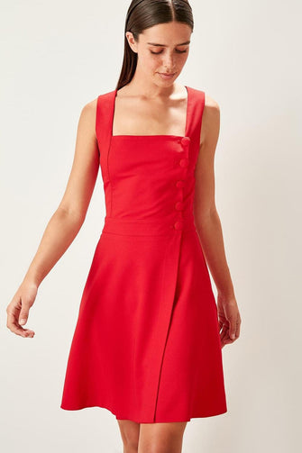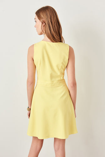 Yellow/Red/ Navy Blue Button Detail Office Lady Dress