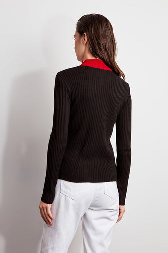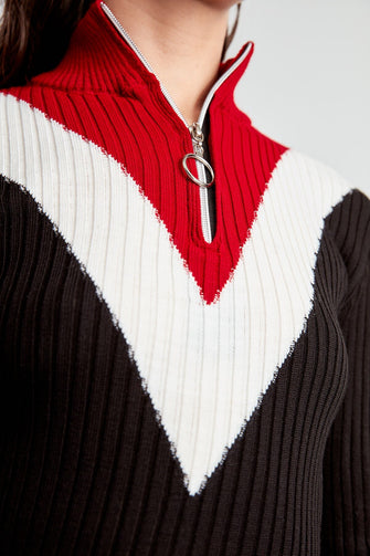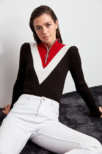 Zip Detail With Color Block Sweater Pullover