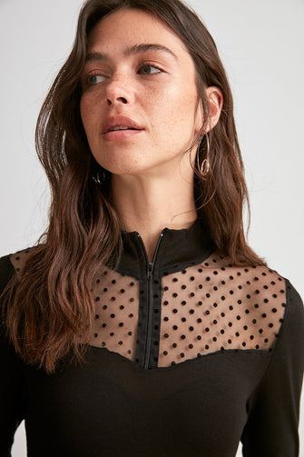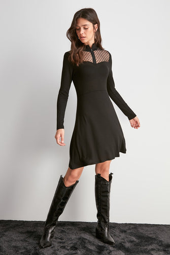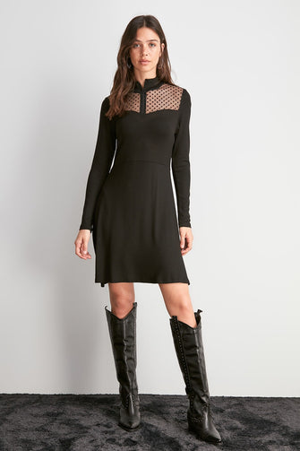 Zipper Tulle Detailed Knit Dress