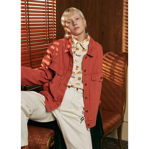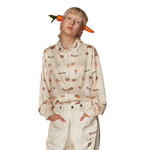 Autumn new loose casual long sleeve Lapel simple lovely printed shirt