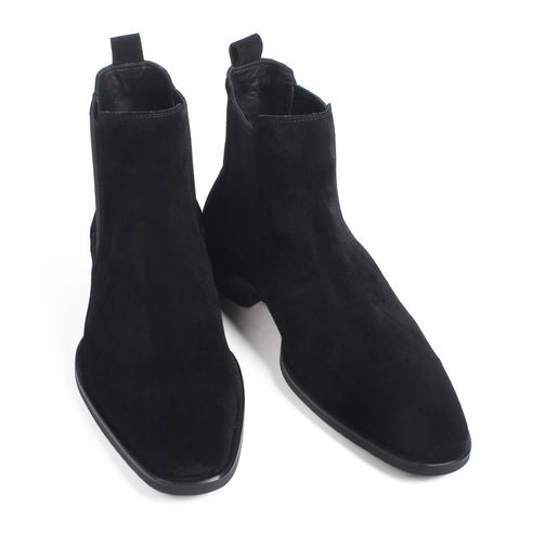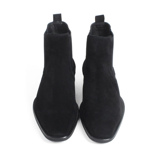 Autumn New Fashion Cow Suede Flat Chelsea Boots For Men Black Slip-On Suede Lining Handmade Driving Boots Hombre