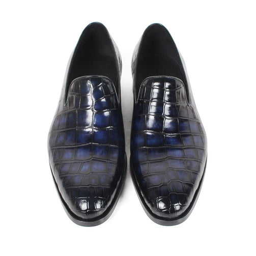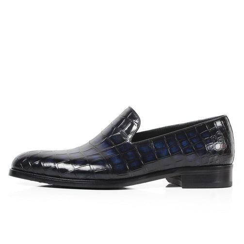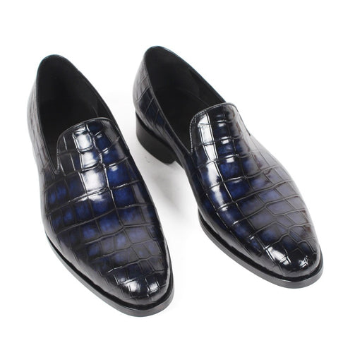 Custom Genuine Leather Shoe Fashion Casual Style Party Crocodile Skin Designer Blue Loafers Shoes Men's Patina Shoe