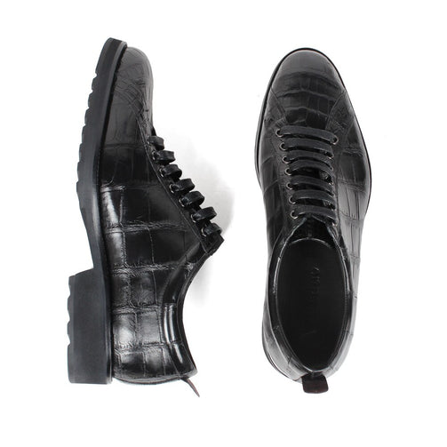 Handmade Fashion Luxury Shoes Black Genuine Leather Casual Mens Derby Style Formal Crocodile Dress Shoes Footwear