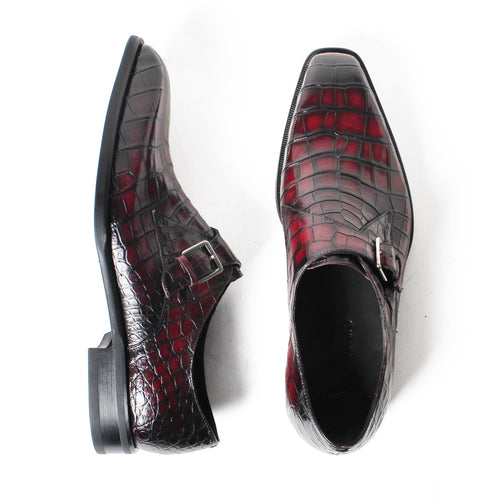 Handmade Fashion Luxury Wedding Genuine Leather Mens Monk Strap Style Formal Crocodile Lether Dress Shoes