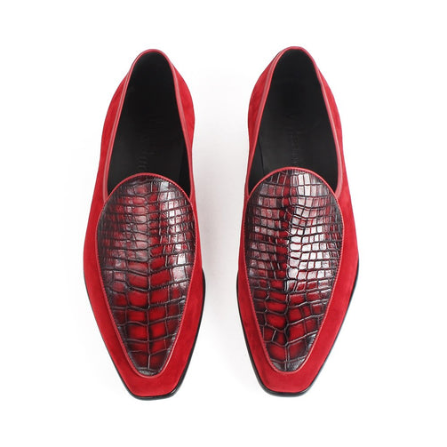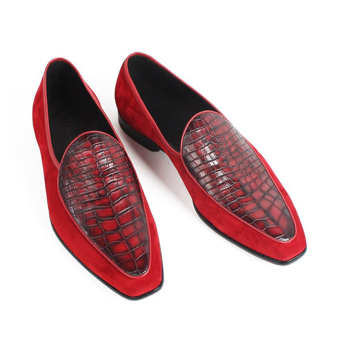 Hot Red Suede Loafer Shoes Men Handmade Casual Footwear Wedding Office Patina Male Bespoke Zapato Hombre Slip-On