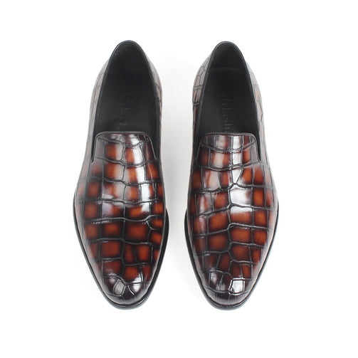 New 100% Crocodile Leather Loafers Shoes Men Patina Handmade Slip-On Mans Footwear Casual Round Toe Wedding Zapatos