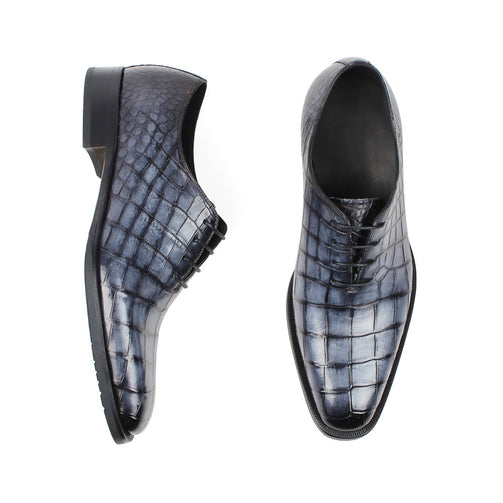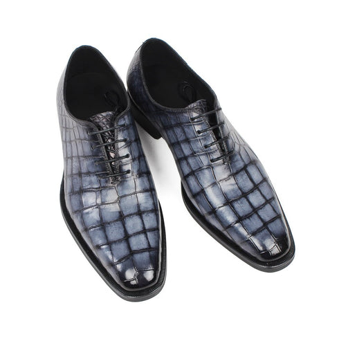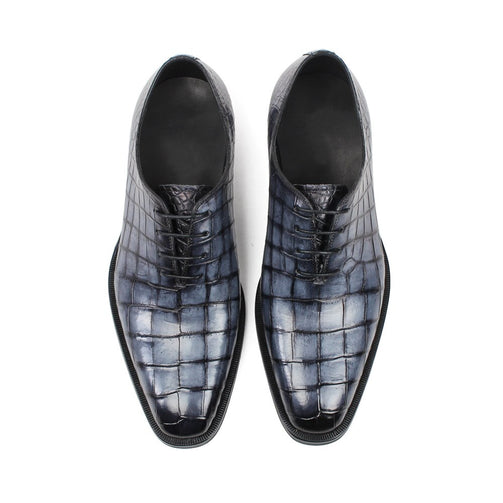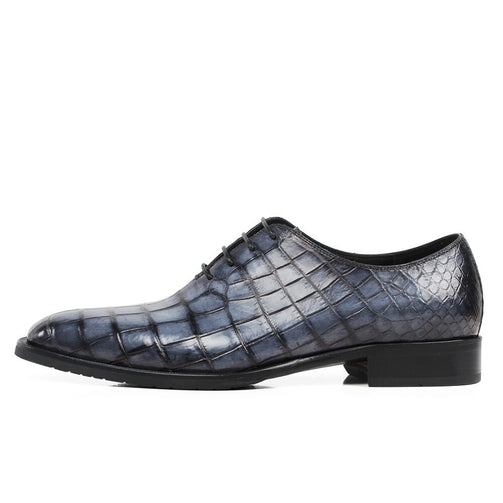 New Men's Oxford Formal Shoes Gray Plaid Genuine Crocodile Leather Shoe Male Wedding Office Handmade Zapatos Hombre