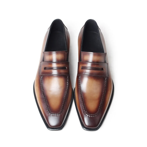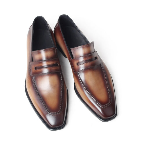 Summer New Loafer Shoes Slip-On Patina Brown Leather Sole Mens Shoes Genuine Leather Casual Footwear Wedding Zapato
