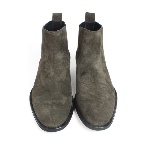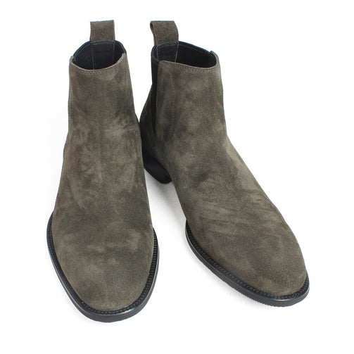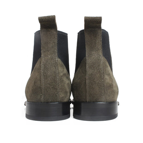 Autumn Cow Suede Leather Flat Chelsea Boots Green Color Handmade Military Ankle Boots Bespoke Round Toe Botas de Hombre