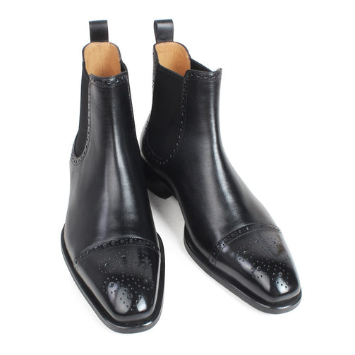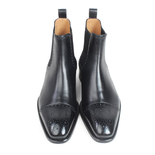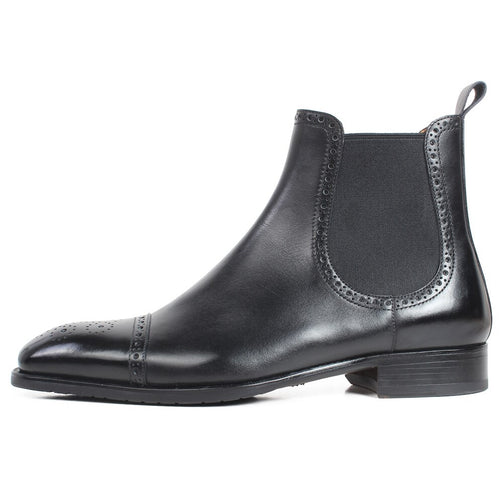 Autumn New Men's Chelsea Boots Slip-on Black Genuine Cow Skin Handmade Brogue Patina Blake Ankle Leather Boots For Men