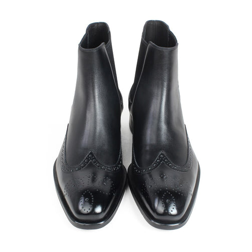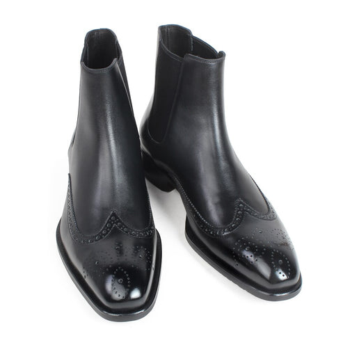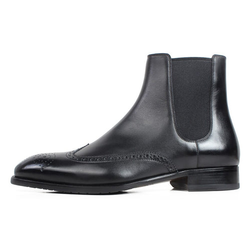 Black Full Brogue Flat Ankle Boots For Men Patina Custom Made Genuine Cow Skin Men's Chelsea Boots Winter Leather Botas