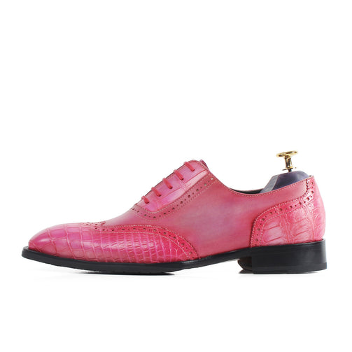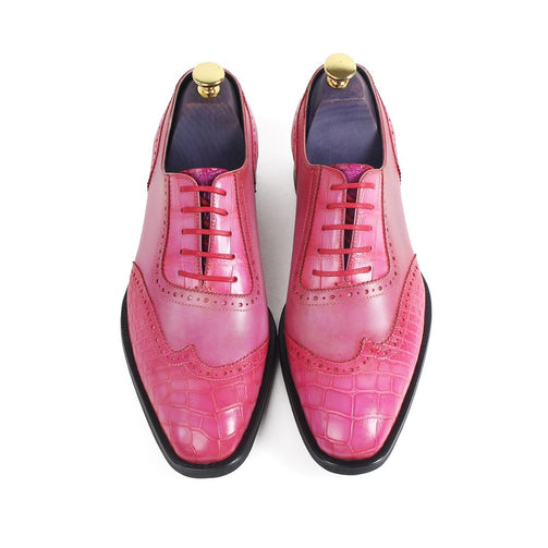 Brand New Pink Oxford Dress Shoes For Men 2019 Fashion Genuine Leather Handmade Zapatos Masculino Wedding Business Shoes