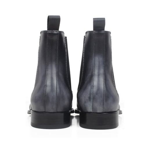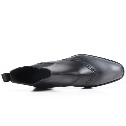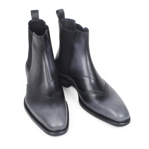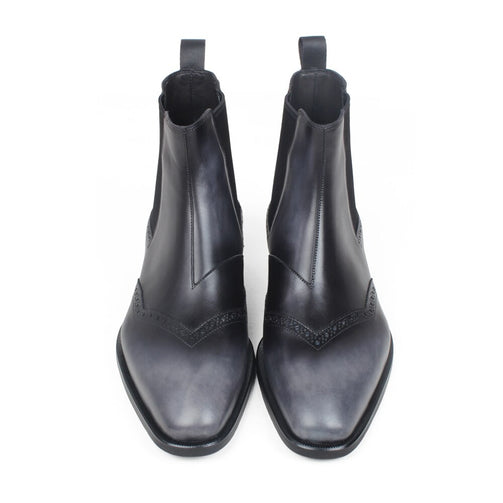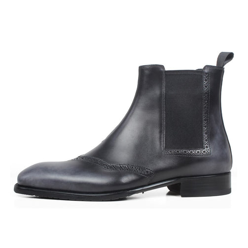 Brogue Chelsea Boots For Men Black Gray Square Toe Genuine Cow Leather Ankle Boots Male Winter New Casual Mans Footwear