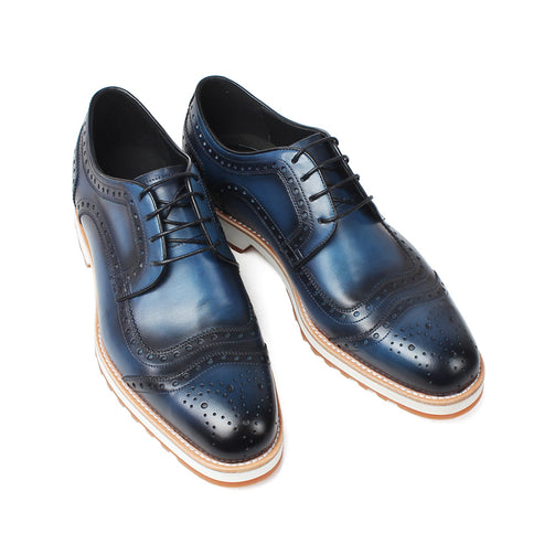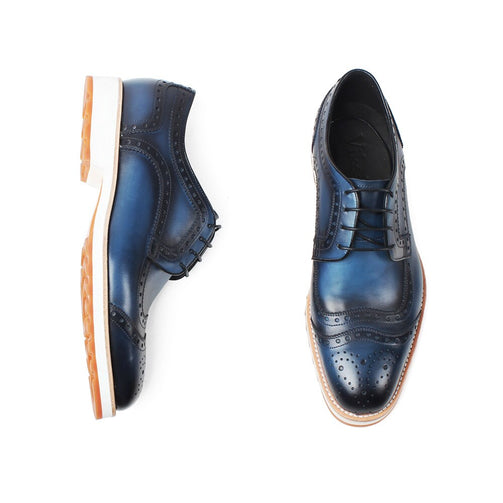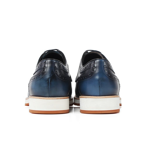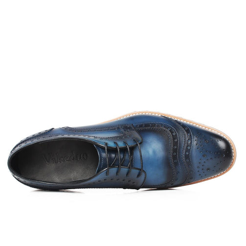 Classic Full Brogues Handmade Wedding Party Derby Shoes Business Blue Brand Male Genuine Leather Patina Men Dress Shoes