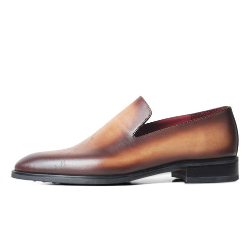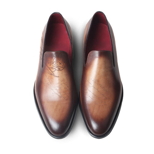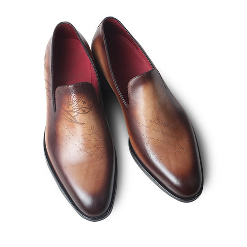 Letter Engraving Loafer Shoes Men's Genuine Leather Slip-On Footwear Patina Brown Casual Driving Shoe Male Luxury Zapato